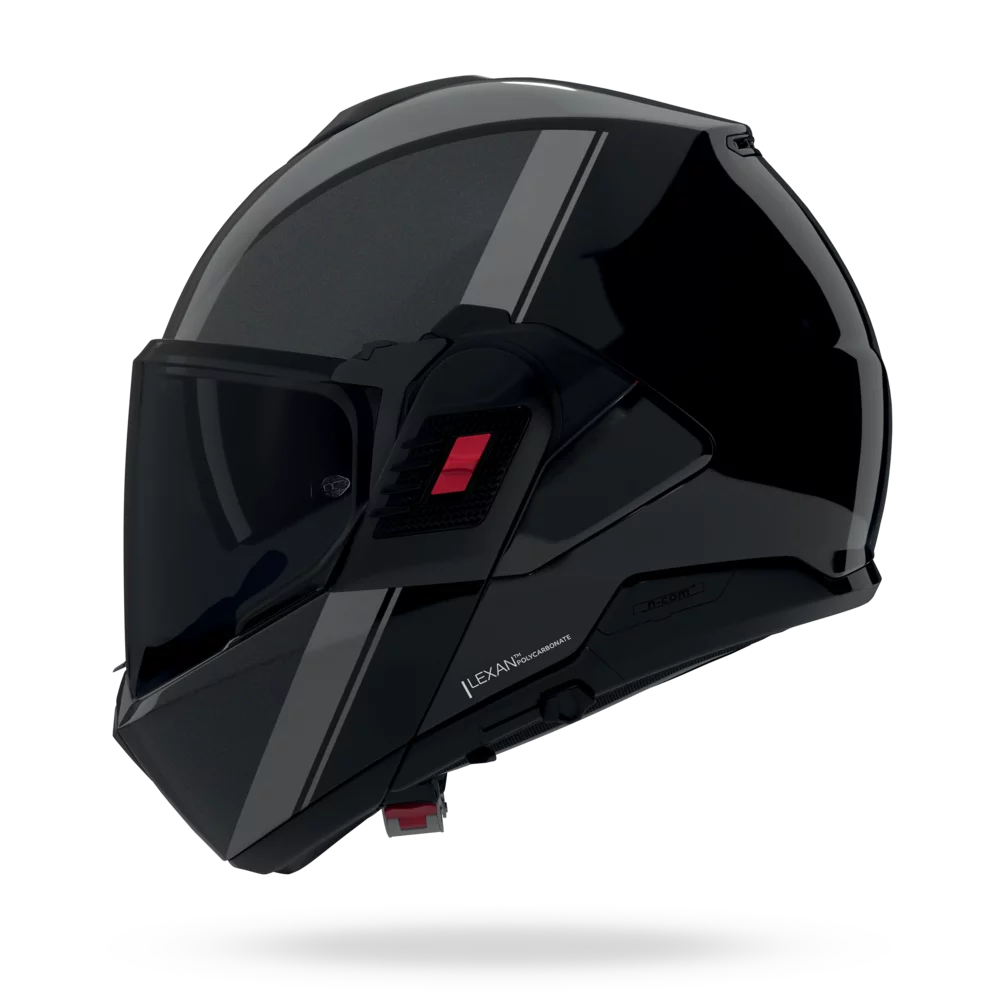 Nolan conquers the world of modular helmets with the exclusive flip-back N120-1, a helmet that represents the very best in technology, innovation and design, created to respond to the demands of a market increasingly oriented towards cross-over motorbikes. With this modular helmet with dual full-face (P) and Jet (J) homologation and chin guard reversible up to 180°, Nolan breaks the mould with an innovative flip-back technology concept. The chin-guard opening system, named Dual Action, using double levers, is one of the most significant characteristics of this model, which offers simple and fluid opening and closing. The creation of graphics and colour options is also the result of extensive study, offering unique shades such as Sabbia, Ocra and Rosso Viscerale, as well as sophisticated combinations of block colours or innovative applications that combine colours and decals. The balance of colour and the elegant design are maintained in all usage configurations. The N120-1 can be fitted with the N-Com communication system.