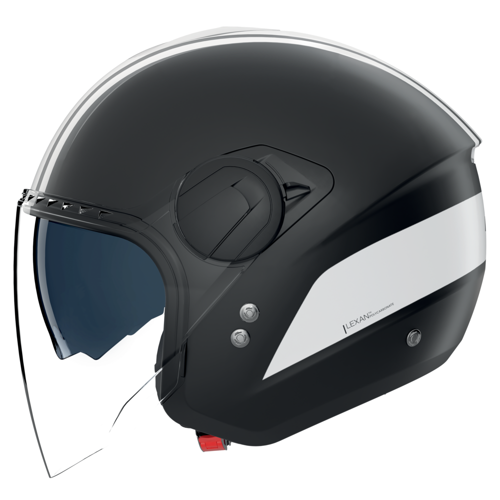 Enjoy your daily city commute in style, safety, and comfort with the new N20-2 Visor jet helmet. Its contemporary design strikes the perfect balance between modern aesthetics, practicality, and understated elegance. Crafted from high-strength Lexan™ polycarbonate, the shell offers essential protection, while the integrated visor shields your eyes from wind, insects, and splashes. The N20-2 Visor delivers the ideal combination of open-face freedom and enhanced protection, ensuring a more enjoyable ride through city streets. Key features include a comfortable inner lining, adjustable ventilation, a quick-release buckle, and an integrated sun visor to reduce glare. With full compatibility with our N-Com communication system, you’ll stay connected wherever your day takes you. Experience practicality, style, and safety—every day. 100% Made in Italy.