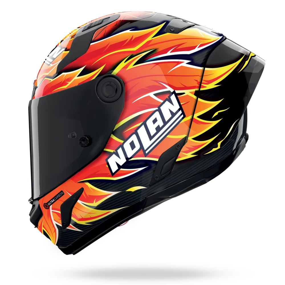 L’unione tra un Brand capace di coniugare stile e sportività quale è Nolan e un pilota coriaceo, dal carattere forte e combattivo come Andrea Iannone, ha dato vita a questo casco unico: X-804 RS UC REPLICA IANNONE. Ogni linea grafica presente sulla calotta è simbolo di una trasformazione profonda, che riflette il presente di Andrea, costruito con ambizione e dedizione. Un chiaro messaggio che si cela dietro all’immagine della fenice unita alla frase “LIKE A PHOENIX I RISE FROM THE ASHES”: un invito a non fermarsi mai, continuando ad alimentarsi in ogni istante con il fuoco che brucia dentro ad ognuno di noi. Fibra e carattere sono i due punti cardine di questa versione, molto simile all’originale indossato dal pilota in gara, realizzata sulla base del top di gamma integrale in fibra Speeding, personalizzato con dettagli grafici esclusivi: la grafica applicata, con i colori rosso, arancio, giallo e bianco cangianti, si alterna sulla calotta a parti di fibra di carbonio nero pure a vista e a parti lucide, dando al casco una personalità ancora più grintosa e sportiva. Il rosso che avvolge la fenice, si allarga su tutto la parte superiore della calotta, estendendosi fino all’attacco dello spoiler dove la grafica prosegue fino all’estremo retro del casco, riprendendo il logo Nolan e la scritta XSeries, a identificare i caschi in fibra della collezione. Infine, il numero di gara 29 di Iannone è riportato sulla calotta lucida posteriore (sotto allo spoiler), dove è evidenziata anche la scritta “LIKE A PHOENIX I RISE FROM THE ASHES”. Completano il casco REPLICA le prese d’aria lucide. X-804 RS UC è rivolto ai piloti che pretendono il massimo in termini di prestazioni, tecnologia e presenza per distinguersi anche in pista, con un casco che rappresenta l'essenza dello sport reinterpretata in stile Nolan. Disponibile da inizio luglio.